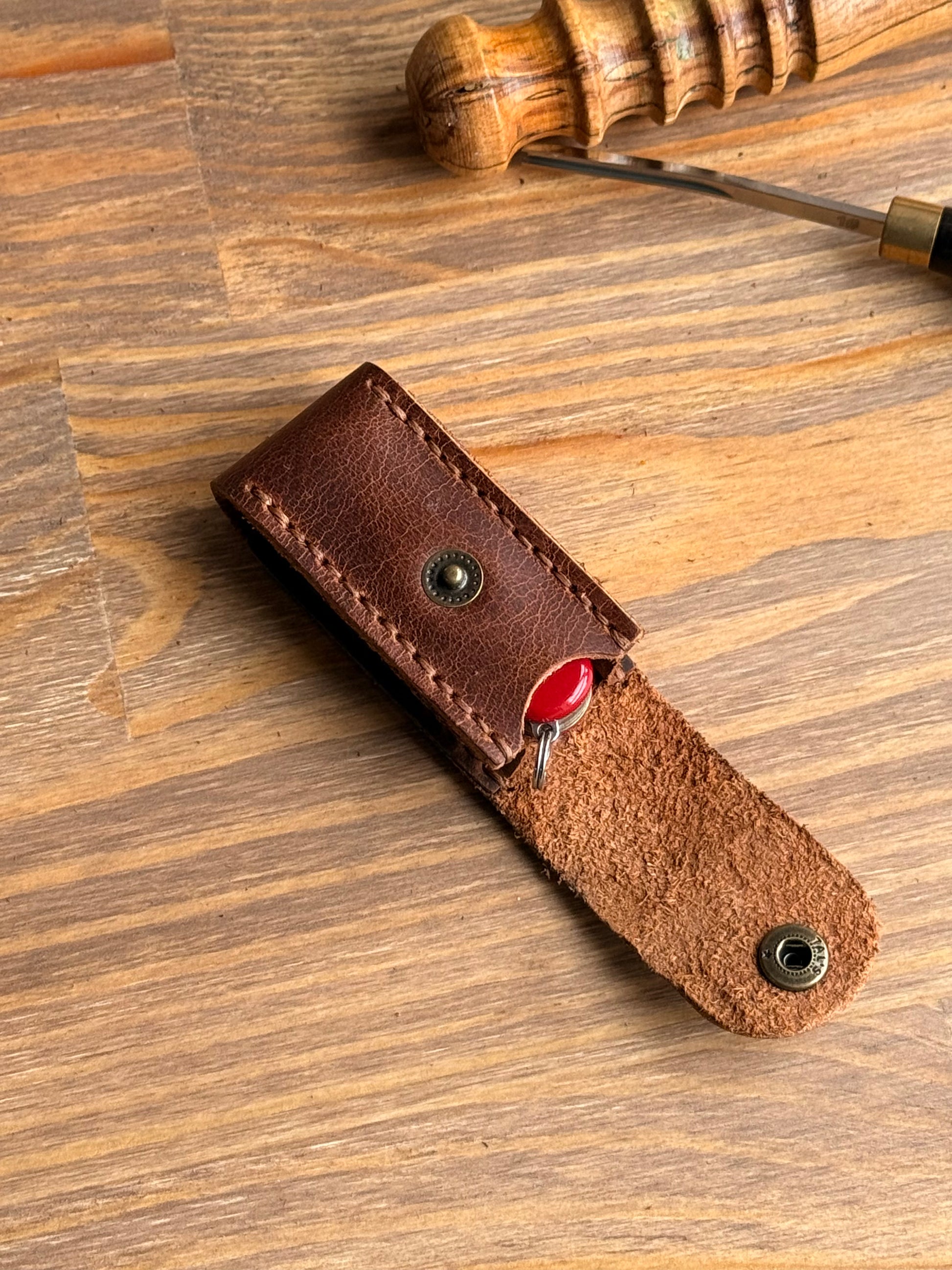 El işçiliğiyle ürettiğimiz deri çakı kılıfları, hem zarif tasarımı hem de uzun ömürlü yapısıyla outdoor tutkunlarının ve günlük kullanıcıların vazgeçilmezi olmaya aday. Kaliteli hakiki deriden üretilen kılıflarımız, çakınızı güvenli bir şekilde taşımanızı sağlarken aynı zamanda stilinizi de yansıtır.