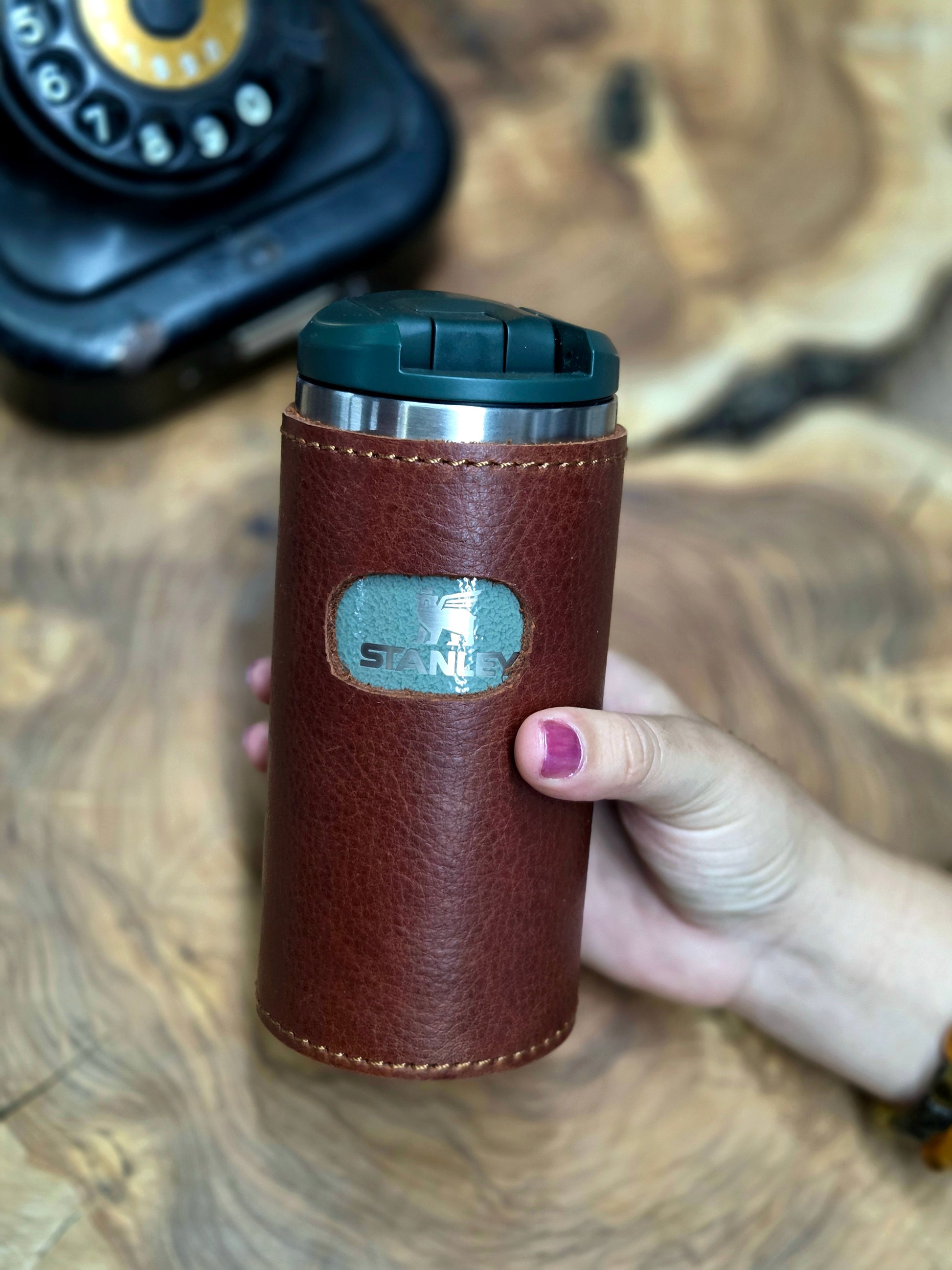 0.35 litrelik Stanley marka termosunuzu hem şık bir şekilde sergileyen hem de güvenle koruyan deri termos kılıfı, dayanıklı yapısı ve şık tasarımıyla öne çıkar. Termosunuzu dış etkenlerden korurken, aynı zamanda stilinize de katkı sağlar.